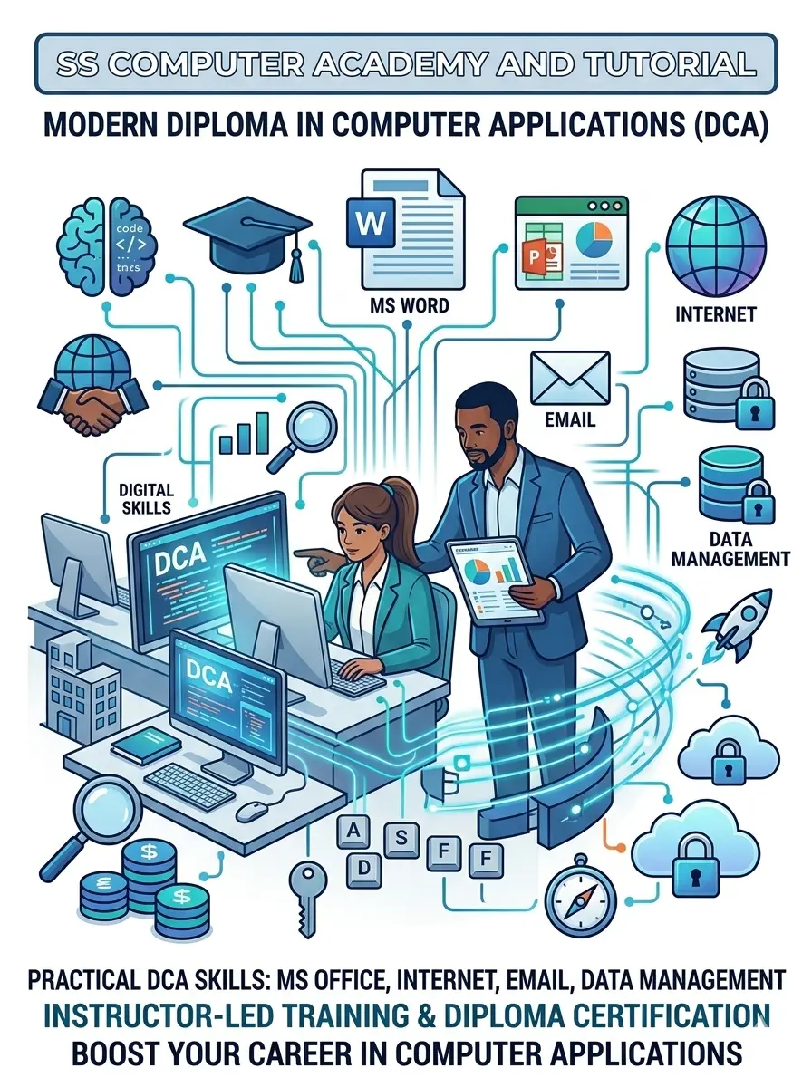 SS COMPUTER ACADEMY AND TUTORIAL is a professional computer training institute dedicated to providing practical and career-oriented computer education. Our courses are designed for students, job seekers, and beginners who want to build strong digital skills. With experienced instructors, modern computer labs, and industry-relevant training programs, we help students gain confidence and prepare for real-world opportunities in the digital age.